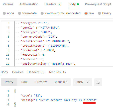 Request & Respon API buka blokir, nomor rekening 15001000018