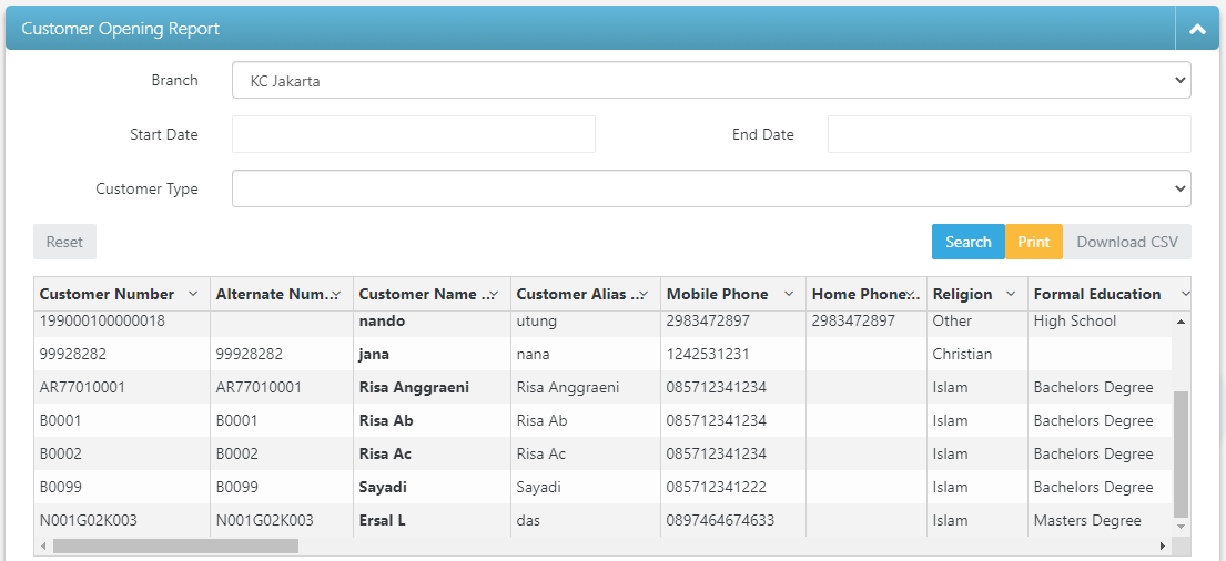 - Klik tombol Download CSV, untuk mendownload laporan dalam bentuk .csv