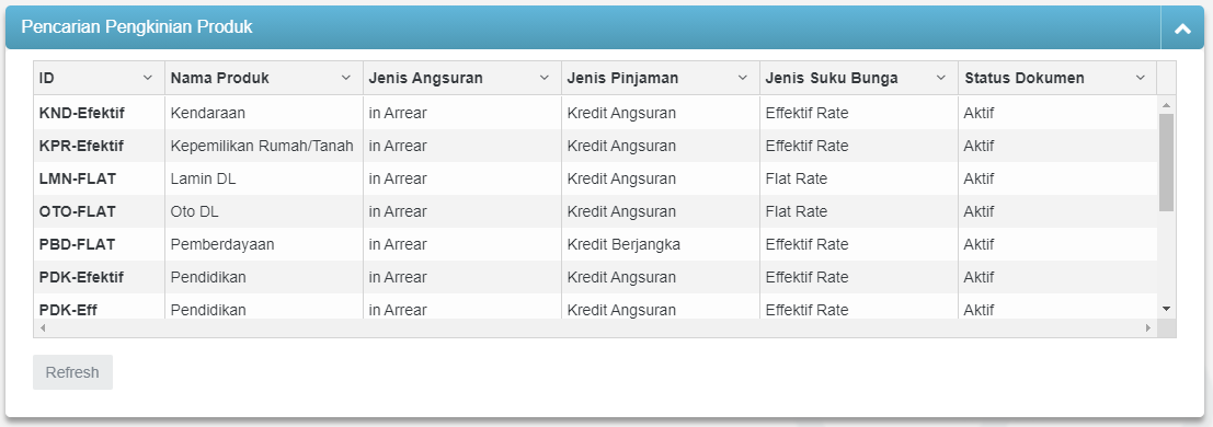 - Muncul detail data Produk Pinjaman untuk dilakukan pengecekan data