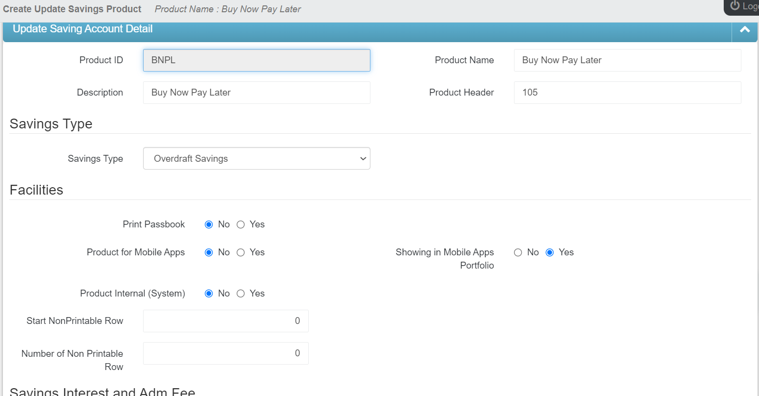 Update Savings Product
